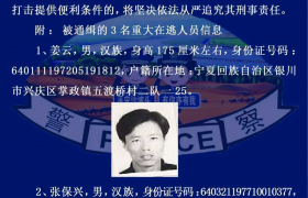 原标题:警方悬赏10万元!通缉宁夏这3名重大在逃人员! 来源:平安沙坡头