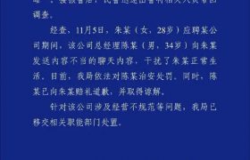 女子试岗第一天被暗示“陪睡”?西安警方:涉事公司总经理被处罚 新京报讯11月9日,雁塔公安官博发布警情通报,内…