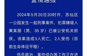 【湖南郴州市苏仙区一公园发生一起刑事案件,造成3人死亡,2人受伤】 警情通报 2024年5月20日20时许,苏…