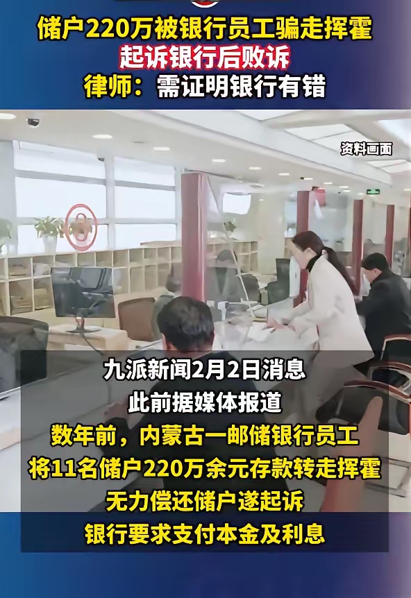 储户220万被银行员工骗走挥霍,起诉银行后败诉,律师:需证明银行有错。